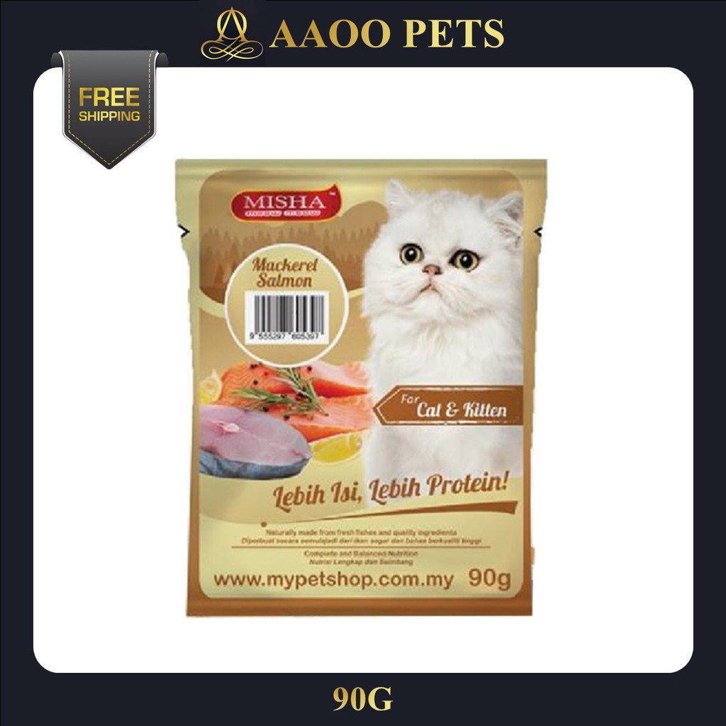 Misha Wet Cat Food Pouch Mackerel Salmon 90G - Cat Wet Food - wetfood makanan kucing