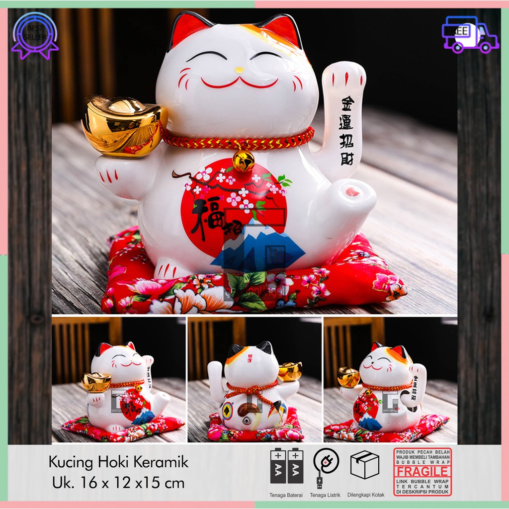 Pajangan Patung Kucing Hoki Rejeki Maneki Neko Keberuntungan Lucky - warna bantal patung kucing